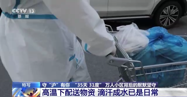 上海市閔行區馬橋鎮夏朵園居民區黨總支副書記 王曉敏:因為今天天氣比較熱,其實我們很多的志愿者每天都是這樣的。我們每天都是穿上“大白”,最起碼要堅持5到6個小時以上,這樣的話一個是不浪費物資。第二個,我們也不敢喝水,不敢上廁所,只能是咬牙堅持著,每天都是這樣。