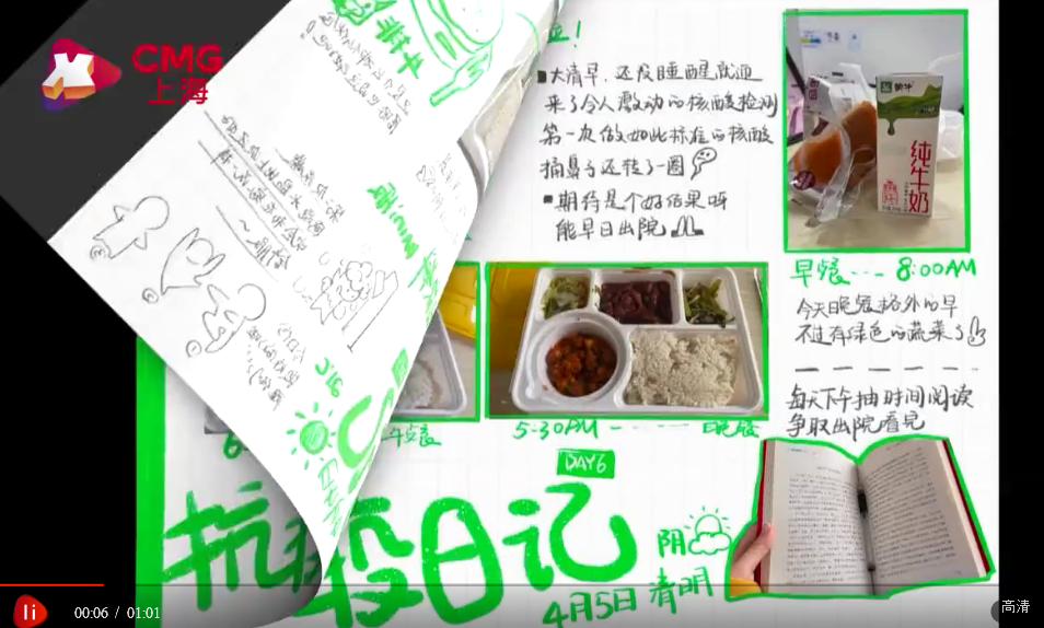 4月8日,在上海市徐匯區(qū)漕寶路方艙醫(yī)院治療了9天之后,一位叫張譯丹的姑娘順利出院。作為一名95后設(shè)計(jì)師,她把在方艙醫(yī)院的每一天都畫成了畫。9篇“方艙日記”里,是她對這段特別生活的記錄,也充滿了對“大白”們甜甜的謝意。