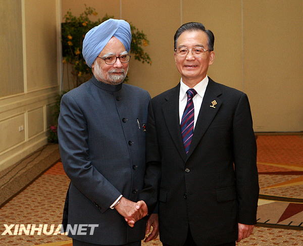 10月24日,正在泰國華欣出席東亞領導人系列會議的中國國務院總理溫家寶會見印度總理辛格。新華社記者 龐興雷 攝