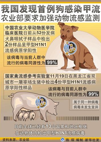 圖表:我國發(fā)現(xiàn)首例狗感染甲流 農(nóng)業(yè)部要求加強(qiáng)動物流感監(jiān)測 新華社發(fā)