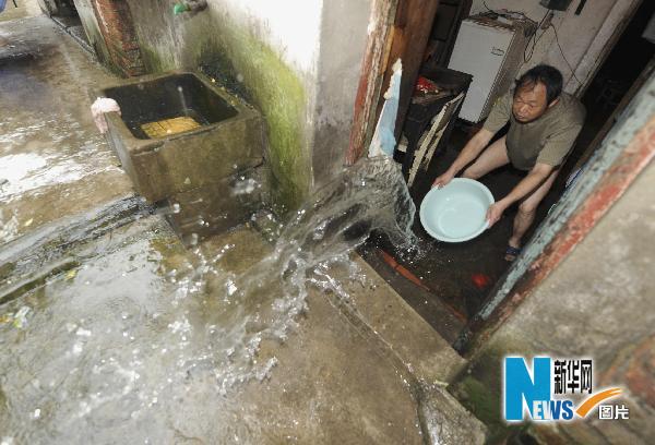 5月18日,南昌市利字街一名居民清除屋內(nèi)積水。受連日暴雨影響,南昌市城區(qū)多處發(fā)生嚴(yán)重內(nèi)澇。 新華社發(fā)