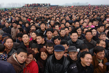 河南省是第一人口大省,據(jù)河南省人口和計(jì)劃生育委員會測算,河南的第1億個小公民將在2010年7月7日中午至7月8日凌晨誕生。實(shí)行計(jì)劃生育政策后,這個數(shù)字的到來已經(jīng)整整推遲了13年。圖為河南省寶豐縣的馬街書會上趕會的群眾。新華社記者王頌攝