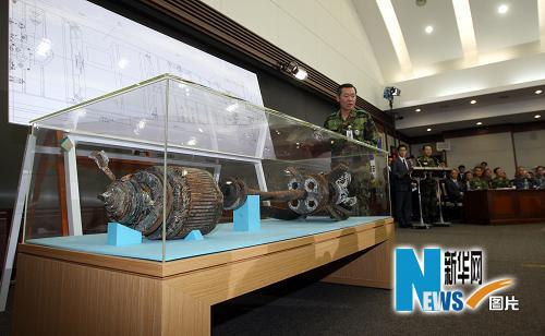 5月20日,韓國“天安”號軍民聯(lián)合調查團成員展示在事故海域搜集到的證據(jù)。當日,韓國“天安”號軍民聯(lián)合調查團公布正式調查結果稱,綜合各種證據(jù)來看,韓國海軍的“天安”號警戒艦是遭受朝鮮小型潛水艇發(fā)射的魚雷攻擊而沉沒的。新華社/聯(lián)合通訊社
