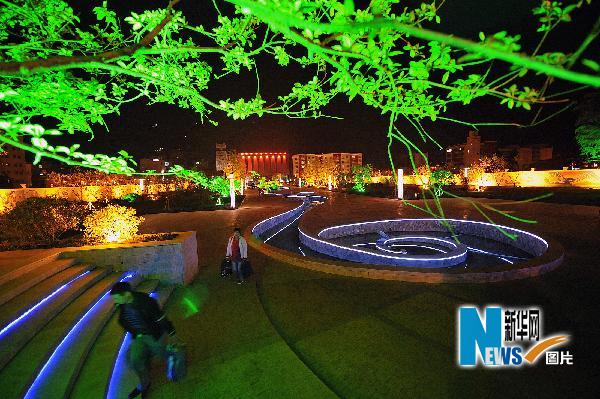 5月11日,汶川中軸線廣場夜景。 “5·12”汶川地震過去兩年了,汶川新城重建初見輪廓,整個縣城煥發(fā)著勃勃生機,夜色迷人。 新華社記者 何俊昌 攝