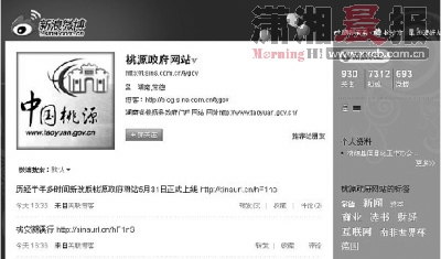 湖南桃源縣政府開通首個政府微博 試水網絡問政