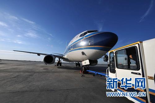 6月14日,中國南方航空公司執飛的包機在烏魯木齊國際機場做起飛前的準備。新華社記者趙戈攝