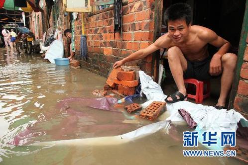 6月15日,南寧市廣西醫科大學第二附屬醫院附近的居民區內澇嚴重。新華社發(唐輝吉 攝)