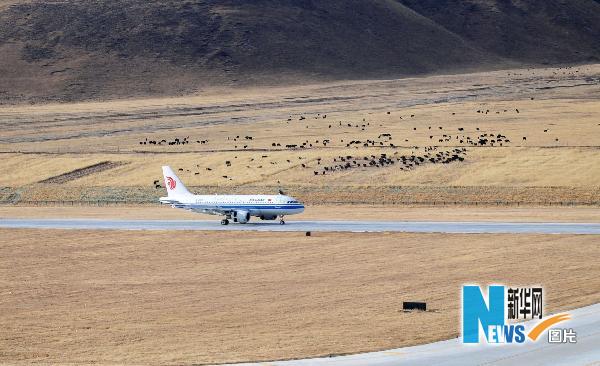 資料圖片:4月29日,一架國航空客A319客機降落在玉樹巴塘機場。 新華社記者 吳光于 攝