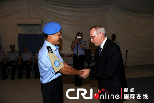 儀式上,在場的眾人還深切緬懷了在年初的海地大地震中,為海地維和事業犧牲的8名中國維和警察。