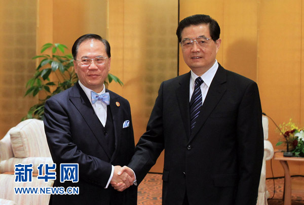 胡錦濤會見曾蔭權 11月13日,國家主席胡錦濤在日本橫濱會見香港特別行政區行政長官曾蔭權。新華社記者樊如鈞攝