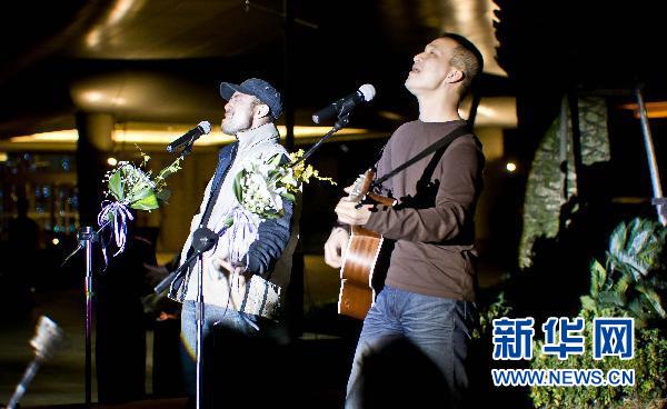 農民工歌手組合“旭日陽剛”在寧波參加一個為農民工子弟學校舉辦的慈善義演晚會(2010年11月28日攝)。從“芙蓉姐姐”到“后舍男生”,從“西單女孩”到“旭日陽剛”,一個又一個來自地下室、出租屋、地鐵站、酒吧迪廳的草根人物,通過網絡一夜走紅后,成為現實生活中的“明星”。但是,這些從網絡走出的草根“明星”由于都存在這樣或那樣的先天不足,很多都已成為浮云或正在走向浮云,在現實中很囧。一些參加全國兩會的代表委員指出,“網絡紅人”現象往往有非理性的一面,除了某些惡俗的“紅人”外,諸如“旭日陽剛”這樣的草根人物通過網絡平臺走紅后能否站穩、站久,尚需練好“內功”。新華社發
