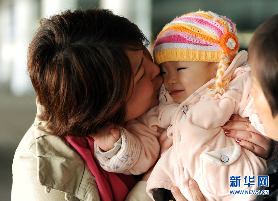 3月16日,撤離日本的中國公民親吻自己多日不見的孩子。當日,從日本撤離回國的1900余名中國公民陸續抵達大連周水子國際機場。大連周水子機場邊檢站啟動應急預案24小時備勤,開通日本歸國公民入境特別通道,為其快捷通關與親人團聚提供便利。大連是中國東北地區通航日本的重要門戶。日本大地震后至3月16日,共有4000余名中國公民從日本入境大連回國。 新華社發(李雨澤)