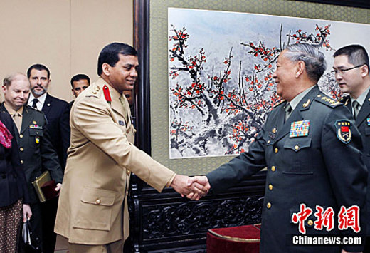 4月1日上午,中國人民解放軍總參謀長陳炳德上將在北京八一大樓會見由中國國防部維和事務辦公室與聯合國共同舉辦的維和教官國際培訓班人員。中新社發(fā) 宋吉河 攝