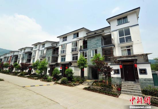 汶川地震后,都江堰市的邊緣山區向峨鄉,在上海市的援建下發生了翻天覆地的變化。整潔的小區,火紅的燈籠,這個從地震中倔強站起的小山村生機煥發。圖為:漂亮的農家。中新社發 劉忠俊 攝