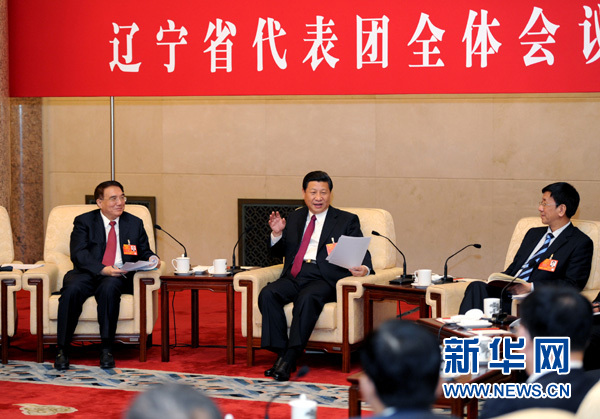 習(xí)近平參加了遼寧代表團審議。陳政高、陳海波、李萬才、張文成、項曉云、王金笛、耿洪臣、張廣寧等8位代表先后圍繞加快實現(xiàn)遼寧老工業(yè)基地全面振興、推進遼寧沿海經(jīng)濟帶建設(shè)、推動實現(xiàn)更高質(zhì)量的就業(yè)等問題踴躍發(fā)言,暢談感受、設(shè)想、建議。習(xí)近平認(rèn)真聽取和記錄,不時詢問情況,并作了重要講話。習(xí)近平指出,要進一步做好攻堅克難、艱苦創(chuàng)業(yè)的思想準(zhǔn)備和工作準(zhǔn)備,大力實施振興東北地區(qū)等老工業(yè)基地戰(zhàn)略,加快建設(shè)社會主義新農(nóng)村,全面增強工業(yè)核心競爭力,促進資源型城市可持續(xù)發(fā)展,建設(shè)向東北亞開放的重要樞紐。要大力做好保障和改善民生工作,注重關(guān)心生活困難群眾,讓群眾得到看得見、摸得著的實惠。習(xí)近平強調(diào),要大力加強思想道德建設(shè)。雷鋒、郭明義、羅陽身上所具有的信念的能量、大愛的胸懷、忘我的精神、進取的銳氣,正是我們民族精神的最好寫照,他們都是我們“民族的脊梁”。要充分發(fā)揮各方面英模人物的榜樣作用,大力激發(fā)社會正能量,為實現(xiàn)“中國夢”提供強大精神動力。