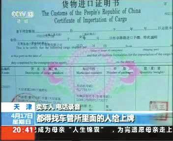 在記者的要求下,賣車人將已經上好牌的車輛手續一一發了過來,關單、商檢、車輛一致性證書、發票、電子信息表均齊全。他告訴記者,自己能走車管所的“關系”,只需要找已被“打點過”的一位工作人員就能拿到牌照。