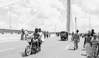 達累斯薩拉姆居民紛紛走上大橋,體驗發展帶來的便利。