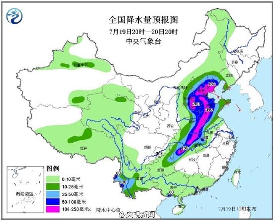今天,山西、河北、河南、湖北等地暴雨如注。其中,湖北荊門馬良、河南安陽林州局地1天降雨量相當于常年的年降水量。中央氣象臺繼續發布暴雨橙色預警,預計到明晚,全國多地仍有暴雨,局地伴有雷暴大風等強對流天氣。看圖防范!(央視記者任梅梅)
