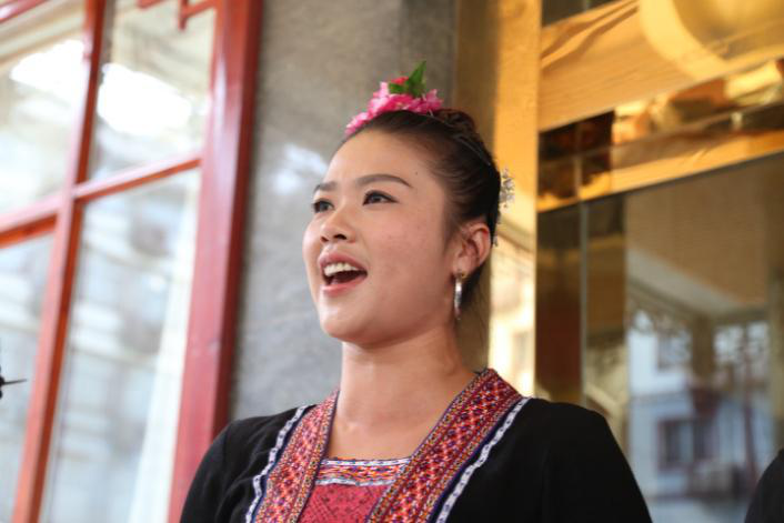侗族少女正在演唱侗族歡迎曲《侗鄉(xiāng)情》 圖/中國(guó)青年報(bào)·中青在線記者 仵楠