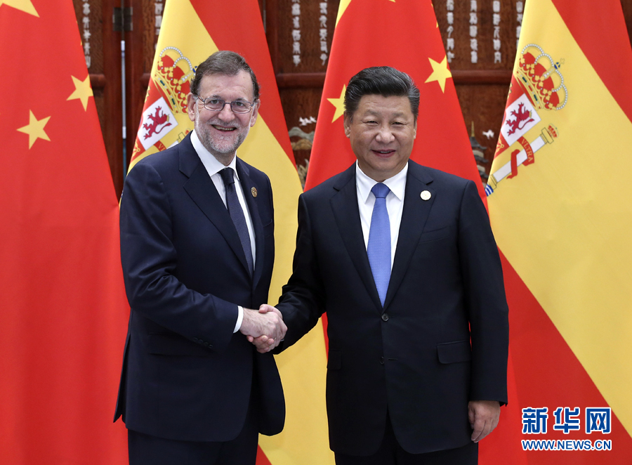 9月5日,國家主席習近平在杭州會見西班牙首相拉霍伊。新華社記者龐興雷攝 圖片來源:新華網