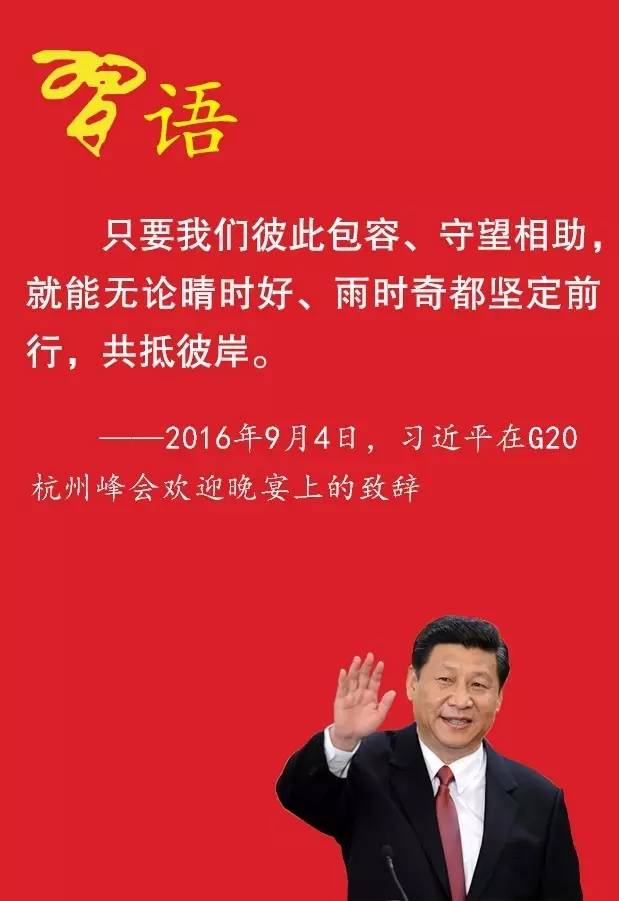 在杭州峰會上的閉幕辭中,習近平指出,在我們共同努力下,二十國集團領導人杭州峰會取得了豐碩成果,畫上了圓滿句號。相信此次會議將成為一個嶄新起點,讓二十國集團從杭州再出發。