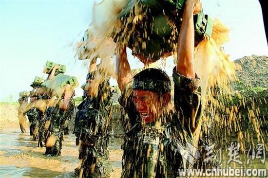 “記住了,以后夜晚的集合沒有哨音,有時是水槍,更多的是瓦斯!”教官的吼聲回響在夜空。“每 人帶上自己的‘另一半’,1分鐘后登車。”還沒等隊員們反應過來,訓練已經開始。教官說的“另一半”,就是后來和隊員朝夕相處、連睡覺都在身邊的大背囊, 里裝有單兵帳篷、防毒面具、工兵鍬……每天背著這個30多公斤的“大家伙”,對隊員體能是極大的考驗。