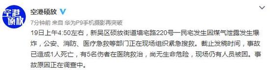 中新網(wǎng)9月19日電 據(jù)江蘇省無錫空港產(chǎn)業(yè)園區(qū)管理委員會(碩放街道辦事處)官方微博消息,19日上午4:50左右,江蘇省無錫市新吳區(qū)碩放街道墻宅路220號一民宅發(fā)生因煤氣泄露發(fā)生爆炸,公安、消防、醫(yī)療急救等部門正在現(xiàn)場組織緊急搜救。