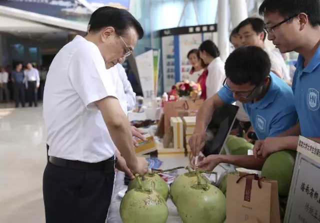 李克強3月22日在三亞市民游客中心考察海南創意旅游紀念品展區時,看到一些包括大學生在內的年輕人正在展示用當地農產品和特色原材料制作的旅游紀念品。總理稱贊他們富有創意,小商品可以打造未來的大希望。他強調,發展新經濟、培育新動能是遵循新發展理念、適應經濟發展新常態的必然選擇,也可以為改造提升傳統動能創造必要和有利條件。