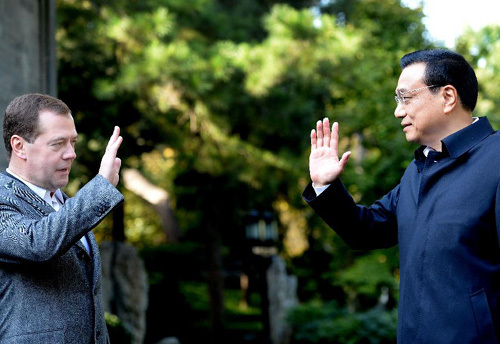 剛見到李克強總理,梅德韋杰夫就憶起那次中國之行:“訪問您的家鄉,我感覺非常親切。我要再次感謝您的邀請和對訪問的安排!