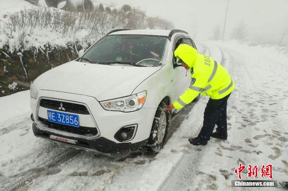 11月8日,受寒潮降溫影響,湖北鶴峰中營鎮、長陽火燒坪等鄂西山區迎來強降雪。降雪從7日晚11時許開始,截至目前,海拔1680米的鶴峰縣中營鎮路面積雪厚度最高達5厘米,而平均海拔1800米的長陽火燒坪路段道路積雪達到20厘米。為全力確保雨雪天氣交通安全暢通,鶴峰、長陽兩地交警全員上路執勤排險,指揮來往駕駛員謹慎駕駛,確保安全。姚宏忠 攝