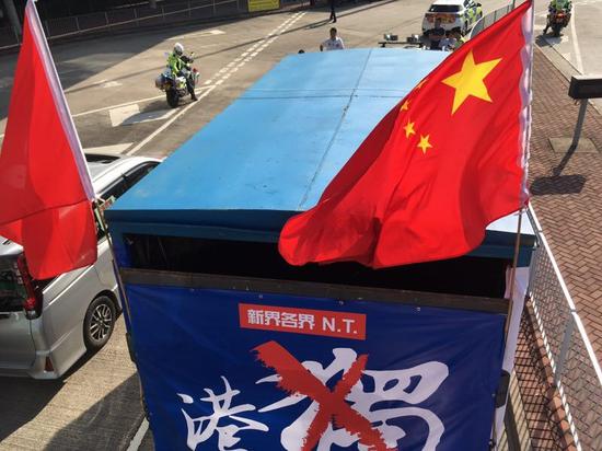 全國人大常委會就基本法104條釋法,得到香港社會各界支持。今天(12日),香港新界的各界人士舉行了“反辱華、反港獨、反暴力、撐釋法”的汽車游行。