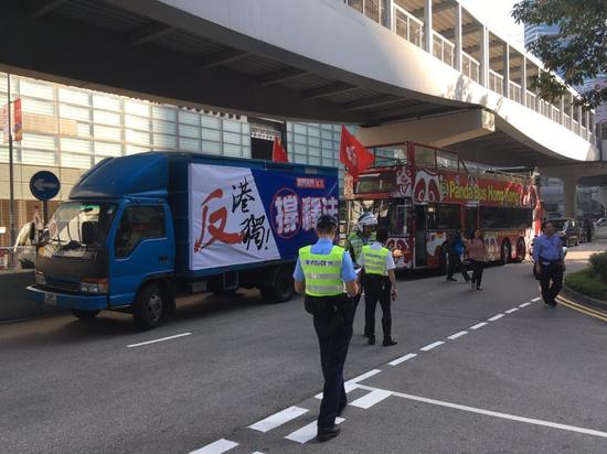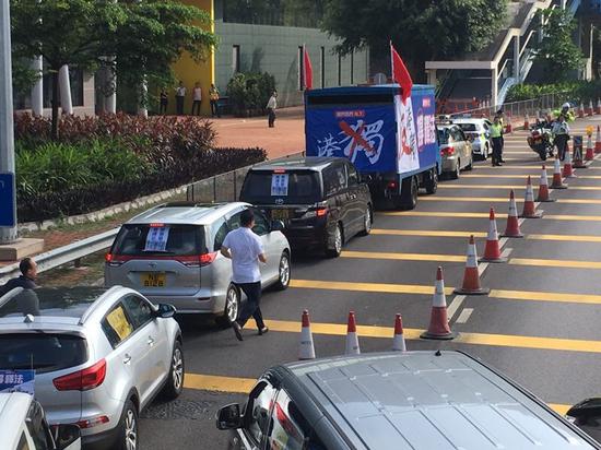 許多市民自發地將私家車開到集合點,將“撐釋法、反港獨”的標語貼到車上,來表達“支持釋法,反對辱華及港獨、反對任何人使用違法方式破壞社會秩序”的心愿。