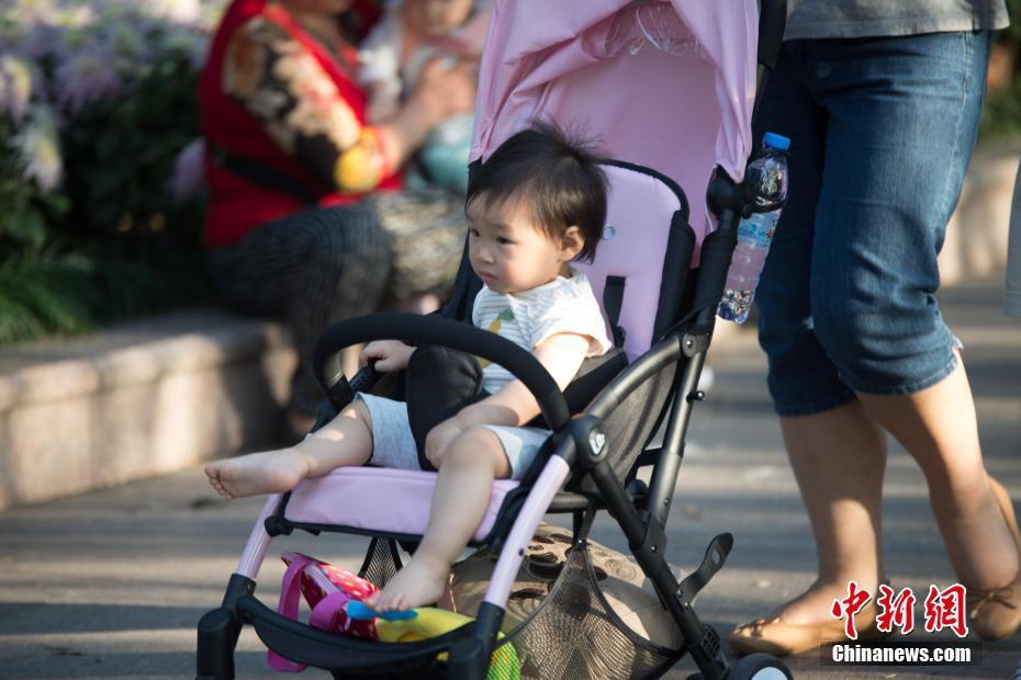 11月14日,福州市區溫度達到30℃,街頭隨處可見穿著短袖短褲出行的市民,時光仿佛仍停留在夏天。圖為幼兒也換上了短裝。 李南軒 攝