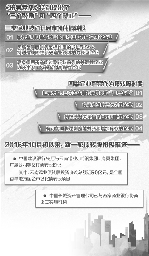 與上一輪政策性債轉股不同,本輪市場化債轉股針對有較好發展前景但遇到暫時困難的優質企業,嚴禁“僵尸企業”、失信企業和助長過剩產能擴張的企業實施債轉股。