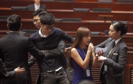 2014年非法“占中”時,梁頌恒已工作5年,包括畢業之初任職中資的中郵電貿、網上團購公司“拉手網”,到成立“青政”前任職DGS Group,負責電腦、電視等電子市場營銷策略的商貿經理。他自稱曾在尖沙咀、金鐘、旺角和銅鑼灣“占領區”輪住,隨后在去年1月,他離開職場集結一批人創立“青年新政”,全力從政。至于游蕙禎,2012年曾到香港中文大學參與“反國教”罷課行動,2014年“非法占中”時,她正在香港會計師公會任文職,每天下班都去金鐘參與“占中”,曾徹夜留守旺角“占領區”。2015年1月,游蕙禎加入梁頌恒創辦的“青年新政”。