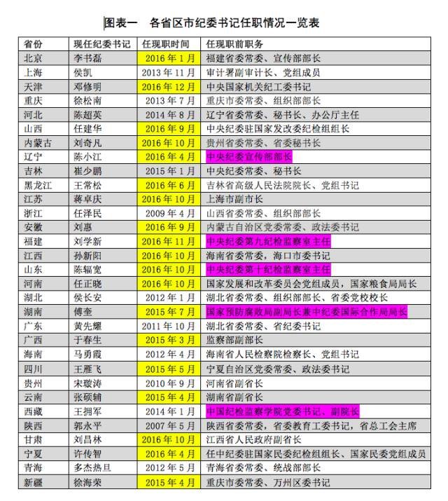 12月6日晚,天津衛視播報新聞稱:“經中共中央批準:鄧修明同志任天津市委委員、常委和天津市紀委書記。”至此,空缺了一個多月的天津市紀委書記的崗位終于得到填補,鄧修明也成為近3個月以來第10名新任的省一級紀委書記。截至目前,2016年以來,全國31個省區市的紀委書記中,14人為新任;目前,僅有7人為黨的十八大前任命。(詳見圖表一)