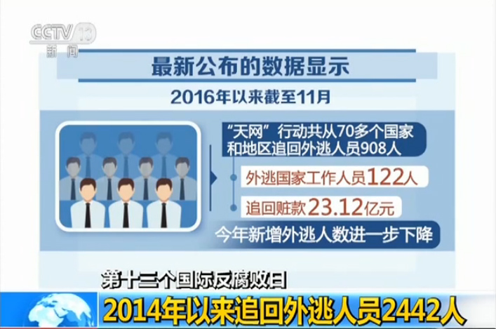從今年的數據來看,截至11月,“天網”行動共從70多個國家和地區追回外逃人員908人,其中外逃國家工作人員122人,追回贓款23.12億元。今年新增外逃人數進一步下降。