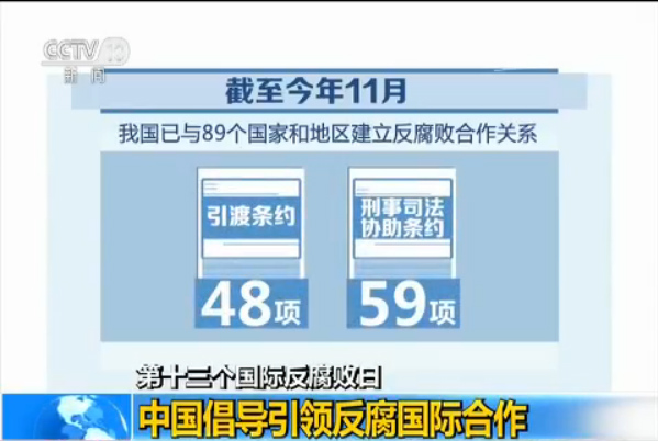 在雙邊合作方面,截至今年11月,我國已與89個國家和地區建立反腐敗合作關系,對外締結48項引渡條約和59項刑事司法協助條約。其中,今年新簽署刑事司法協助條約和引渡條約12項,簽署和續簽6個雙邊反腐敗合作諒解備忘錄。