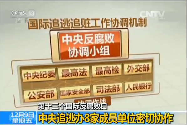 中央追逃辦8家成員單位密切協作 中紀委負責協調統籌
