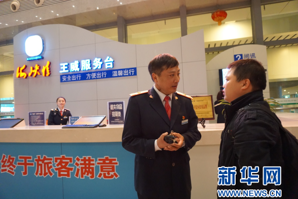 春運期間,火車站客流量陡增,在擁擠的人潮中,藏藍色的身影會讓旅客的內心平添一份安定。“您好,請問有什么可以幫您”,“您這趟車快到檢票時間了,2號進站口人稍微少一點”,“退票請帶身份證到5號窗口”。兩小時下來,這樣的話王威重復了成百上千次,手上水杯里的水卻幾乎未少。
