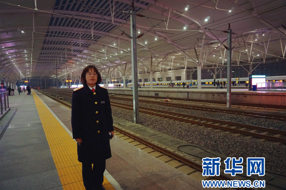 工作人員在寒風中駐守站臺。新華網 李海韻 攝