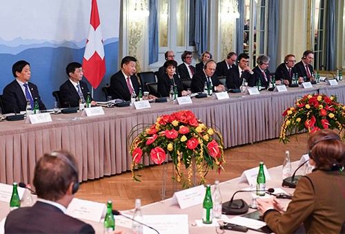 習近平指出,中瑞在維護自由開放的國際經濟秩序方面有著共同利益,希望兩國經濟界共同努力,積極倡導平等互利、開放共贏,反對各種形式的貿易保護主義,在實現自身良好發展同時,為兩國經貿合作提供助力,為兩國關系發展添磚加瓦。