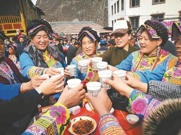茂縣曲谷鄉(xiāng)群眾擺起壩壩宴歡慶新春佳節(jié)。