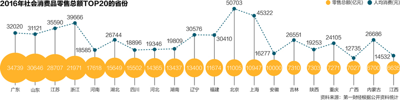 消費力大比拼:14省總量過萬億 9省份人均超3萬