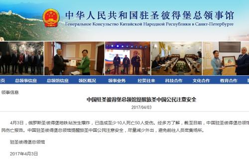 中新網(wǎng)4月4日電 4月3日,俄羅斯圣彼得堡地鐵站發(fā)生爆炸,已造成數(shù)十人傷亡,中國(guó)駐圣彼得堡總領(lǐng)館官網(wǎng)發(fā)布消息稱,暫無(wú)中國(guó)公民傷亡報(bào)告,并提醒旅圣中國(guó)公民注意安全