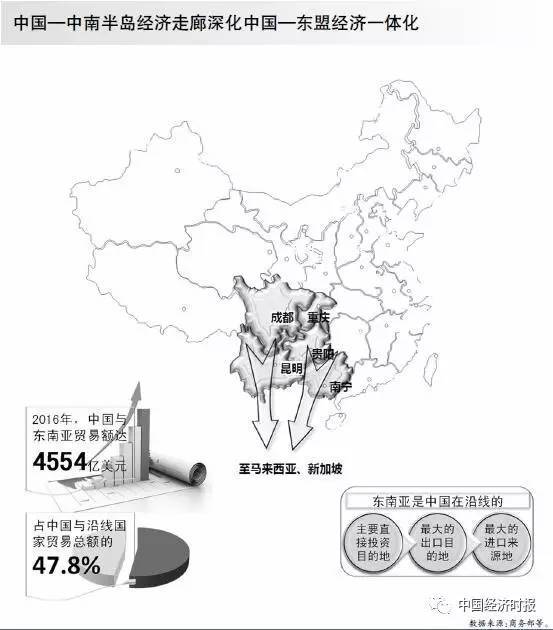 中國(guó)—中南半島經(jīng)濟(jì)走廊是中國(guó)西南通往印度洋的重要通道,中國(guó)與中南半島國(guó)家的貿(mào)易格局并不均衡,各國(guó)與中國(guó)之間的貿(mào)易進(jìn)展不一,“一帶一路”倡議實(shí)施后,沿線國(guó)家之間的貿(mào)易和投資呈加速推進(jìn)態(tài)勢(shì),基礎(chǔ)設(shè)施不斷改善,印尼雅萬高鐵、中老鐵路、中泰鐵路、馬來西亞南部鐵路、匈塞鐵路、瓜達(dá)爾港等重大項(xiàng)目都在有序推進(jìn)。