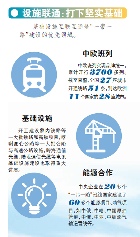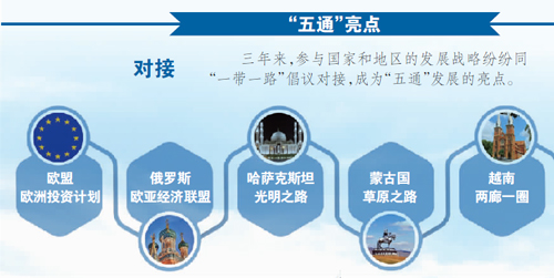 本版以圖文形式,為讀者回顧總結三年多來“一帶一路”建設的“五通”成果。