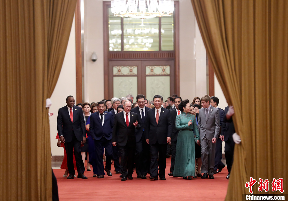 5月14日晚,中國國家主席習近平在北京人民大會堂舉行“一帶一路”國際合作高峰論壇歡迎宴會并致辭。中新社記者 杜洋 攝