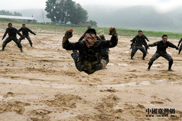 中國臺灣網7月20日訊 (記者 陳佳慧)19日上午,第78集團軍某特戰旅駐訓基地突降大雨,平時黃土飛揚的訓練場頃刻間一片泥濘。對于突如其來的惡劣氣象條件,第78集團軍某特戰旅將其當做錘煉戰斗作風,磨礪部隊血性的機會,仍按原計劃進行捕俘拳科目演練、特種駕駛訓練及反恐演練。參加“同心共筑強軍夢”網絡媒體國防行活動的部分網絡媒體負責人和采編人員,全程觀摩了這場雨中演練。