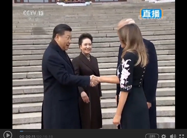 新華網北京11月9日電 國家主席習近平9日上午在人民大會堂東門外廣場舉行歡迎儀式,歡迎美利堅合眾國總統唐納德·特朗普對中國進行國事訪問。應習近平邀請,特朗普于11月8日至10日對中國進行國事訪問。(記者李忠發 據新華社“新華視點”微博報道)